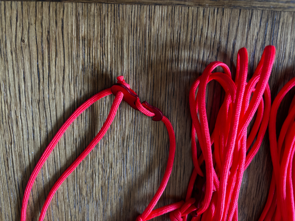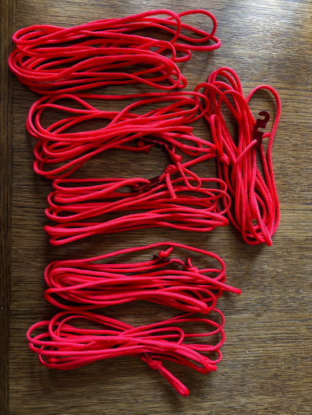 Snygga röda stormlinor som matchar KABE  Hakspänne i aluminium Längd: +3 meter (ca 3,5 meter innan knutar och … + Mer...