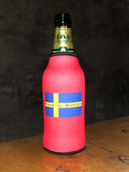 Klubbens snygga fodral håller ölflaskan kyld även en varm sommardag.